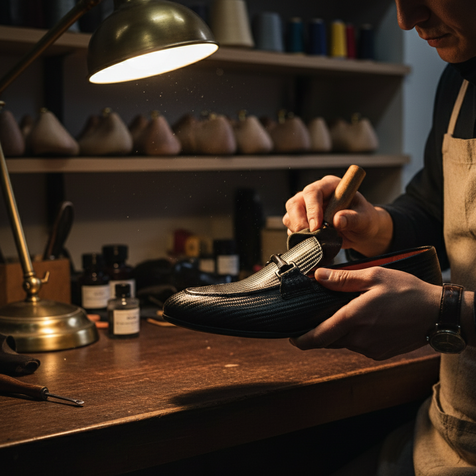 Bold, sleek, and engineered for modern elegance — meet Carbon. Designed in a high-shine, textured finish leather with a subtle carbon-fiber inspired pattern, this loafer is a statement piece for the modern gentleman. The polished trim detail in gunmetal black complements its futuristic vibe, while the soft leather lining and cushioned insole ensure comfort that doesn’t take a back seat. Carbon is for those who want classic loafer ease with a distinctly contemporary twist.