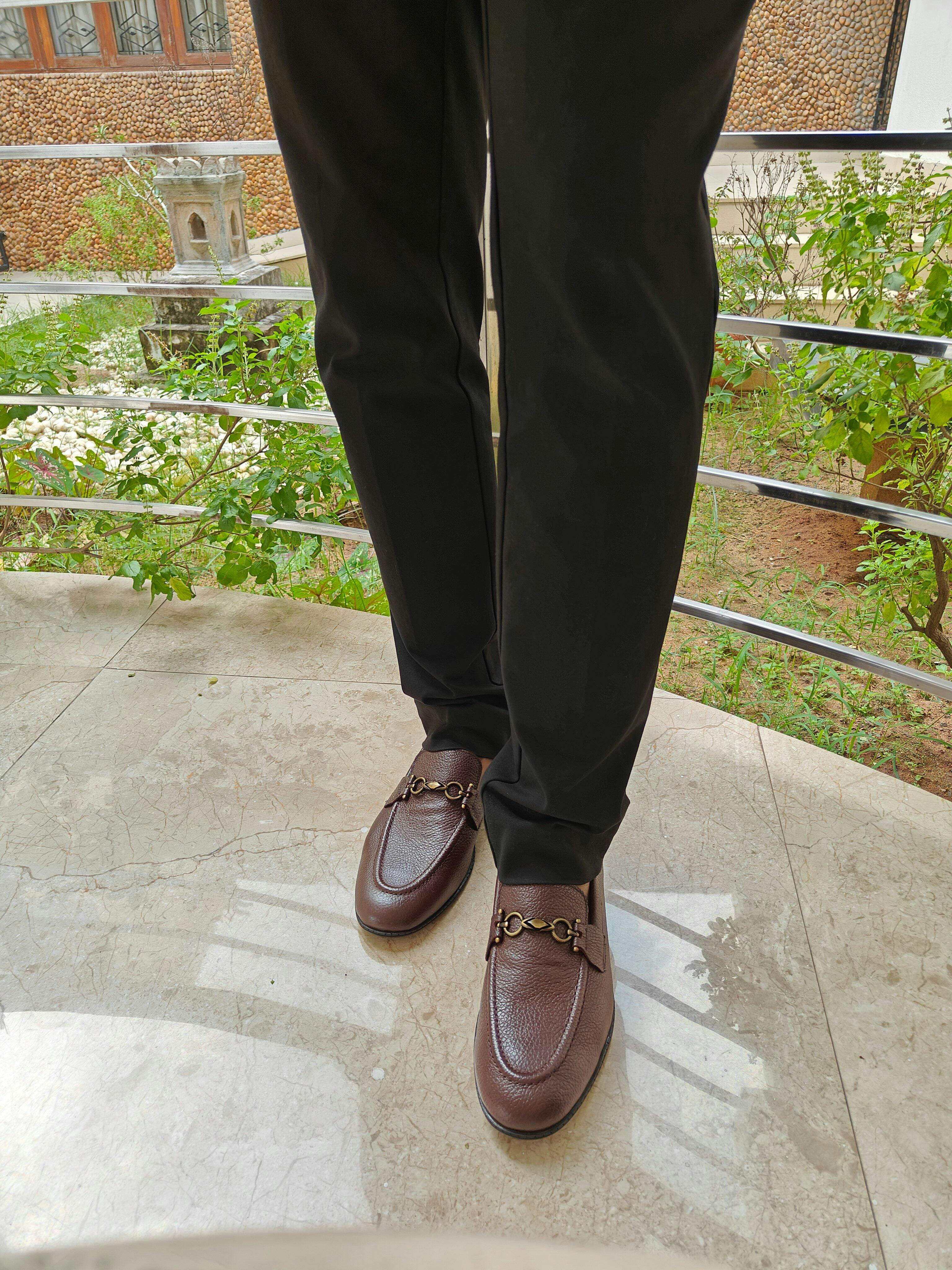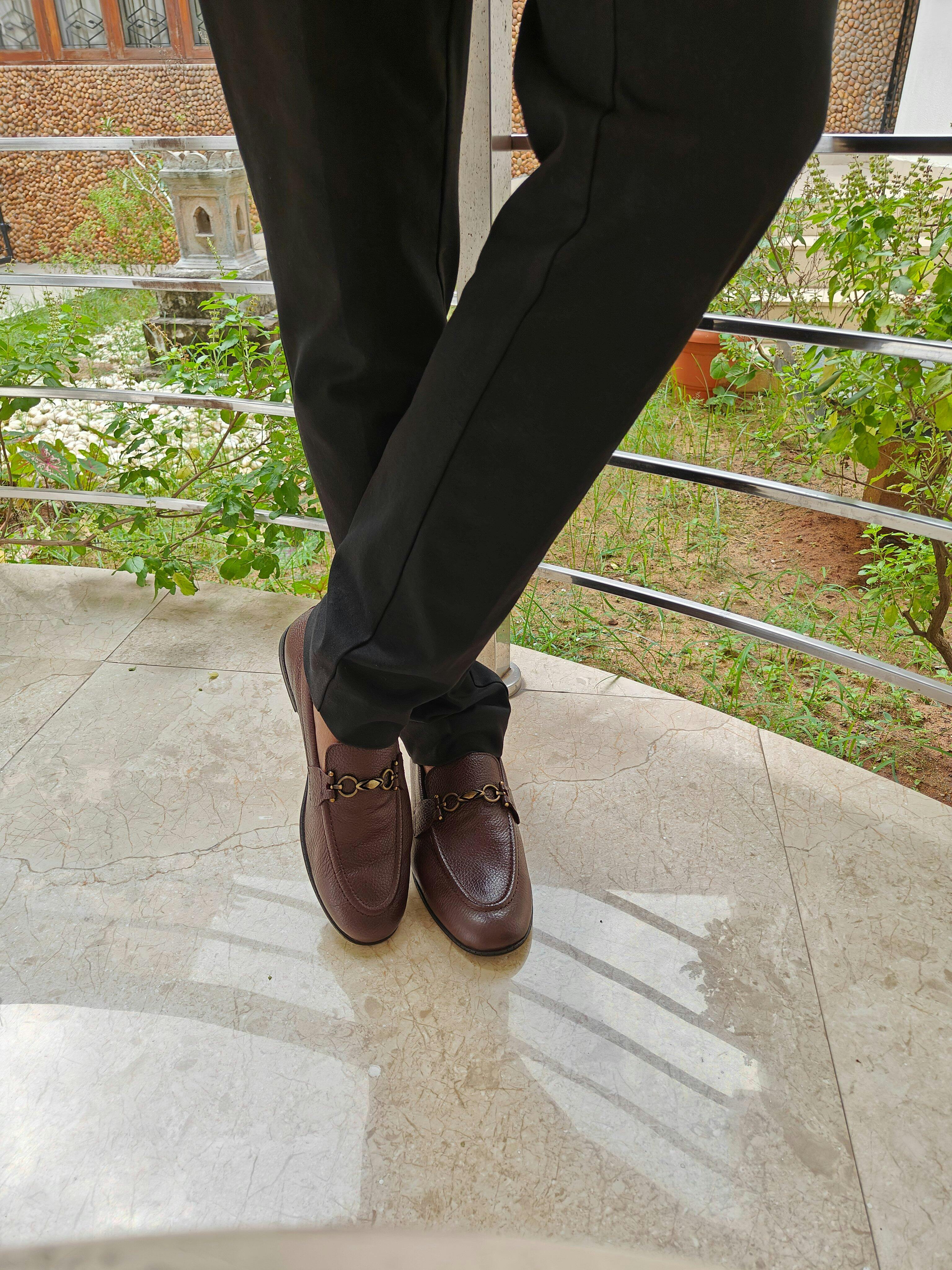 Introducing Mocha, where rich texture meets timeless sophistication. Crafted from premium pebble-grain leather in a deep coffee-brown finish, Mocha blends durability with refined style. The antique brass horsebit detail adds a touch of vintage-inspired character, making this loafer a true wardrobe essential. Soft leather lining and a cushioned footbed ensure all-day comfort, while its sturdy yet flexible sole makes it versatile enough for both formal and casual occasions.
